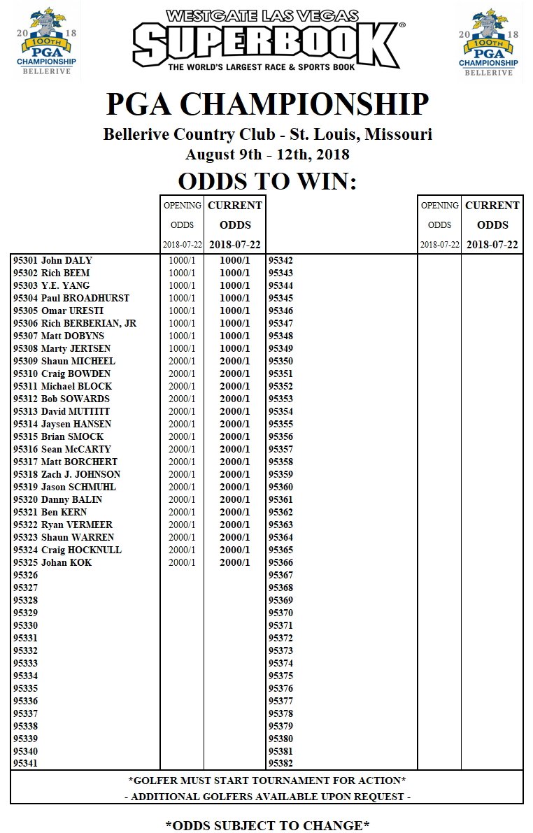 2018 Pga Championship Opening Odds news.wagertalk.com